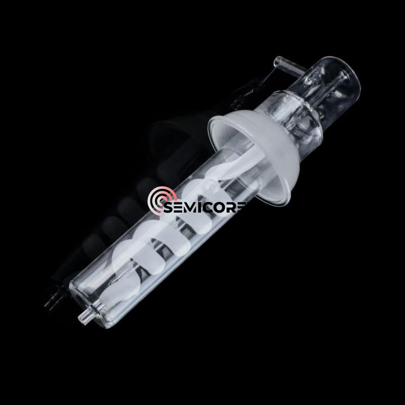 O injetor de ignição foi projetado para servir como uma zona de reação localizada, fornecendo um ambiente limpo e controlado para criar combustão ou reações baseadas em plasma. Isso é útil no setor de fabricação de semicondutores, em que os reatores de ignição podem precisar ativar os gases precursores, decompor espécies químicas complexas ou iniciar etapas de limpeza assistidas por plasma. A limpeza das paredes do reator garante que reações secundárias indesejadas entre a câmara e os reagentes podem não influenciar negativamente a reação e, portanto, podem fornecer controle preciso da reação química. A transparência óptica do quartzo fornece recursos de monitoramento óptico em tempo real para observar a zona de reação, completamente sem obscurecimento, o que é vantajoso no trabalho ou produção experimental.