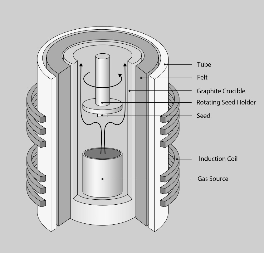 O forno de crescimento de cristais é o equipamento principal para o crescimento de cristais de carboneto de silício. É semelhante ao tradicional forno de crescimento de cristal de silício cristalino. A estrutura do forno não é muito complicada. É composto principalmente pelo corpo do forno, sistema de aquecimento, mecanismo de transmissão de bobinas, sistema de aquisição e medição de vácuo, sistema de caminho de gás, sistema de resfriamento, sistema de controle, etc. O campo térmico e as condições de processo determinam os indicadores -chave, como qualidade, tamanho e condutividade do cristal sic.