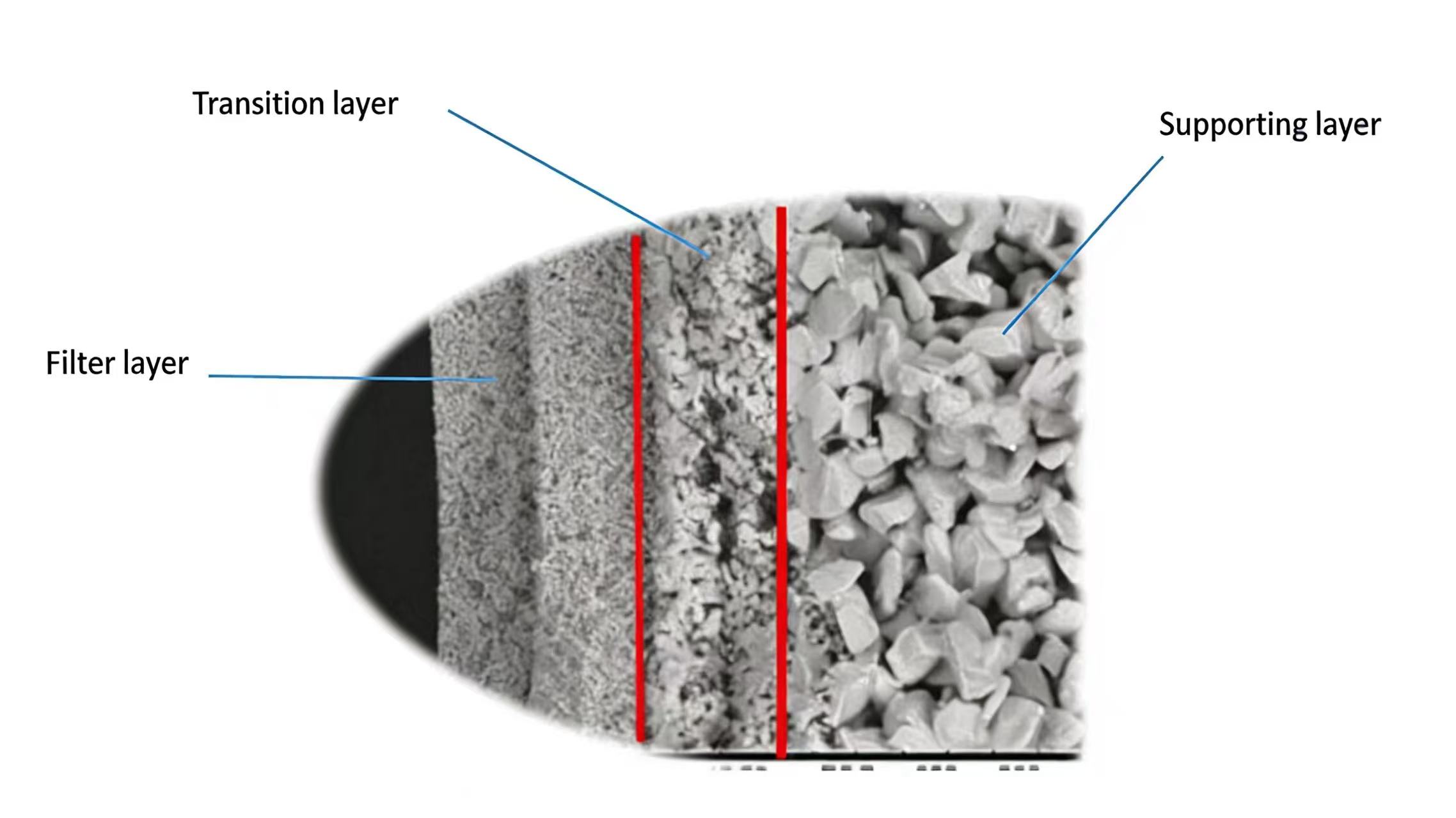 Membranas cerâmicas de carboneto de silíciosão membranas de filtração cerâmicas inorgânicas de alto desempenho com estrutura porosa assimétrica. Fabricadas por técnicas especiais de sinterização, as membranas cerâmicas de carboneto de silício formam uma estrutura de poros gradiente única, consistindo na camada de filtração, na camada de transição e na camada de suporte. Esta estrutura de poros gradientes permite que as membranas cerâmicas de carboneto de silício obtenham interceptação e remoção altamente eficientes de impurezas com diferentes tamanhos de partículas, atendendo perfeitamente aos requisitos dos compradores para diferentes precisões de filtração, como microfiltração, ultrafiltração e nanofiltração.