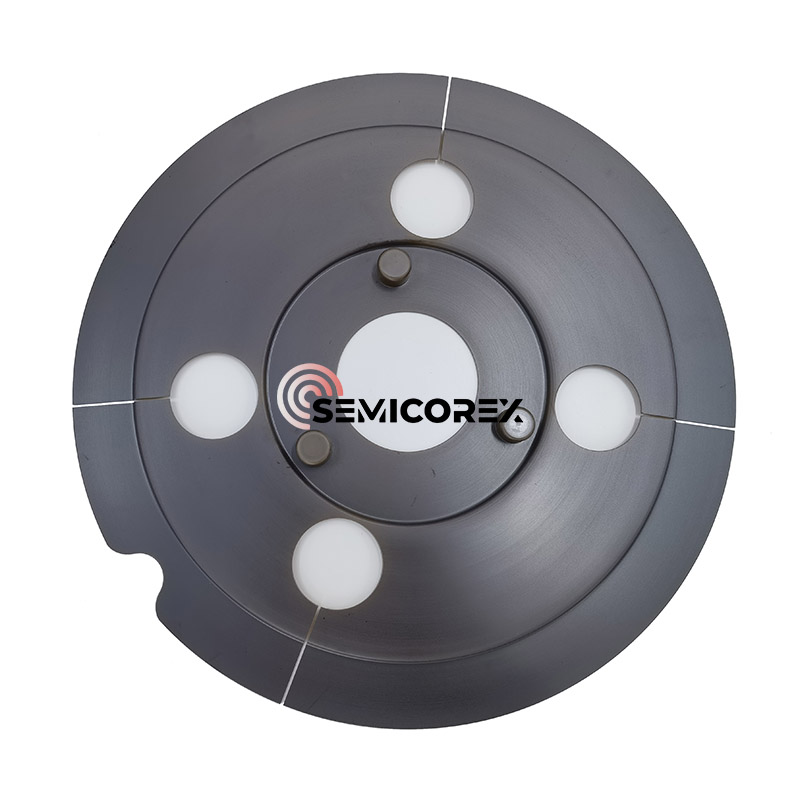 A estrutura de disco do componente, completa com furos perfurados com precisão, permite fluxos controlados de gases e líquidos através das câmaras de processo. Dependendo da aplicação, os furos podem ser configurados para gerenciar o fluxo de subprodutos ou drenagem para um ambiente limpo e estável durante o processo do wafer. Em uma aplicação de epitaxia, por exemplo, o SiC Fin pode auxiliar no direcionamento de gases de processo ou fluxos de condensado, melhorando assim a uniformidade do filme e minimizando a contaminação por partículas. Em ferramentas de gravação, é eficaz para a remoção segura e eficiente de espécies reativas e subprodutos líquidos, protegendo os componentes vulneráveis da câmara contra a degradação química.